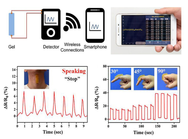 导电凝胶材料监测人体运动信号示意图