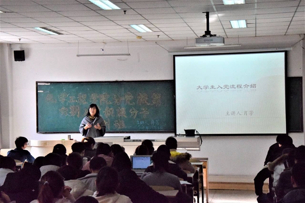 本次培训班自11月26日开班以来,分别在南湖和北湖两个校区同时培训。期间学院党委书记、专职组织员、团委书记、学生党支部书记为本次培训班学员授课,授课内容涵盖了如何端正入党动机、党的基本知识、入党流程、如何对标党员标准坚定理想信念、党与共青团的关系等内容。整个培训过程中,学院分党校加强对日常出勤的考核力度,将平时考核纳入最终结业成绩的一部分;并在结业考试中进行改革,打破以往只考选择题的传统,增加填空题和简答题,加大考核难度,达到了预期效果。