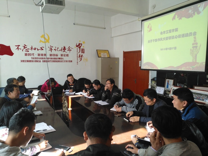学院党委副书记曹永利传达了学校干部作风大整顿谈心谈话工作安排。刘喜明强调yl6809永利官网集团关于干部作风大整顿谈心谈话活动要严格按照学校的提纲要求,遵守时间节点,分层次谈心谈话,真正将谈心谈话工作深入进去,查找出需要解决的问题,改变发展自己,创造良好的政治环境,共同维护化工学院集体的和谐发展。