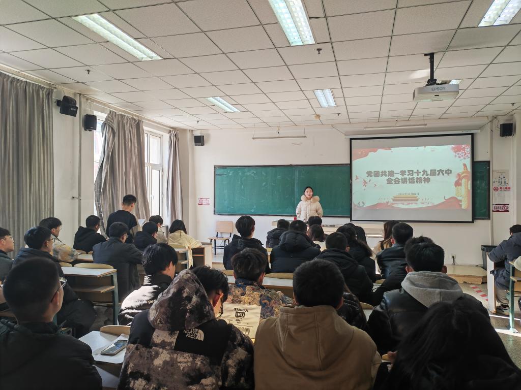 为深入贯彻党的十九届六中全会精神、进一步加强学生党组织建设,增强党员党性意识,提高团员政治觉悟,2021年12月1日,yl6809永利官网集团开展了学习党的十九届六中全会讲话精神的主题活动,本次活动由学生党支部书记、2019级辅导员李秀绒主持,辅导员王明慧、2019级全体学生党员与190601团支部参加了本次活动。