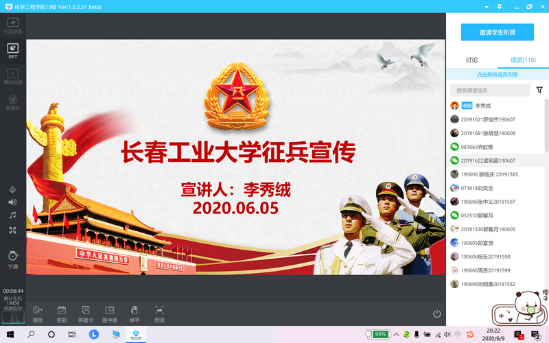 新闻网讯(通讯员陈思琦)为了充分调动青年学生应征入伍,献身国防的积极性,配合学校2020年征兵工作。6月8日,yl6809永利官网集团举办2019级征兵政策宣讲会。会议由2019级辅导员李秀绒老师主讲,2019级全体学生参加了会议。