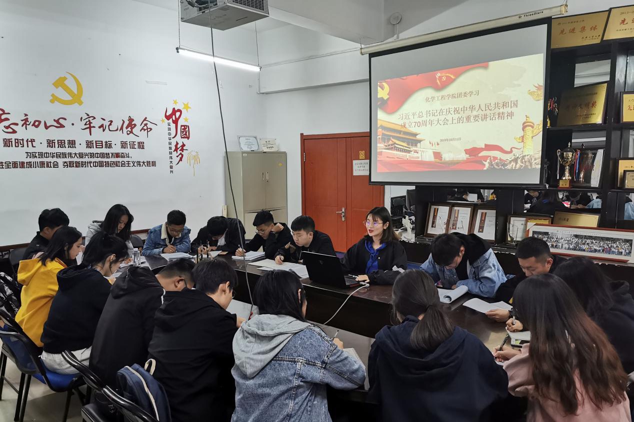 新闻网讯(通讯员刘雨婷 郭一凡)为进一步凝聚思想共识,深刻认识新中国成立70年的光辉历程、伟大成就和宝贵经验,汲取砥砺奋进的精神力量,yl6809永利官网集团团委11日在南湖校区化工楼四楼会议室组织学院团委成员学习习近平总书记在庆祝中华人民共和国成立70周年大会上的重要讲话精神。学习会由学院团委组织部副部长刘香池主持。