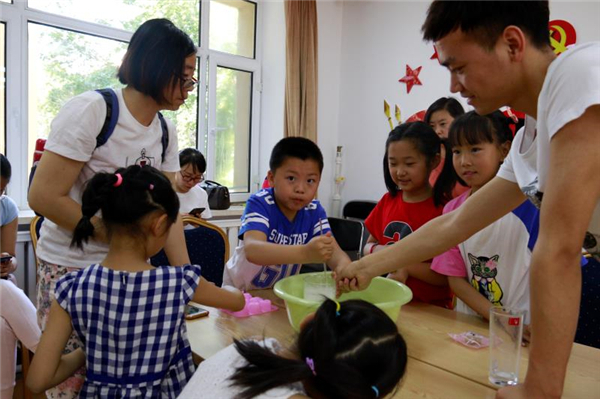 活动伊始,志愿者向社区青少年们讲解了我国的基本水资源状况以及水资源的重要性,宣布本次活动需要进行的实验以及实验操作和仪器使用。第一个实验是“手工肥皂”的制作,通过一定量的牛奶和天然皂基混合,在温水浴中加热,轻轻搅拌至完全融化,混合均匀后冷却即可。手工肥皂没有香精和色素,属于绿色物质,降低了对人体的危害又节约了成本。接着进行了“水中可溶性杂质的去除”实验。用先蒸馏后冷凝的方法分离,得到较为纯净的蒸馏水,孩子们自己动手净化污水,积极活跃兴致盎然。在志愿者们悉心指导和孩子们的共同努力下每个实验都圆满完成。大家一起在快乐中学到知识,锻炼了实践操作能力。最后,志愿者对本次活动进行总结,希望大家珍惜并保护好我们身边的每一滴水,养成节水、护水的好习惯。