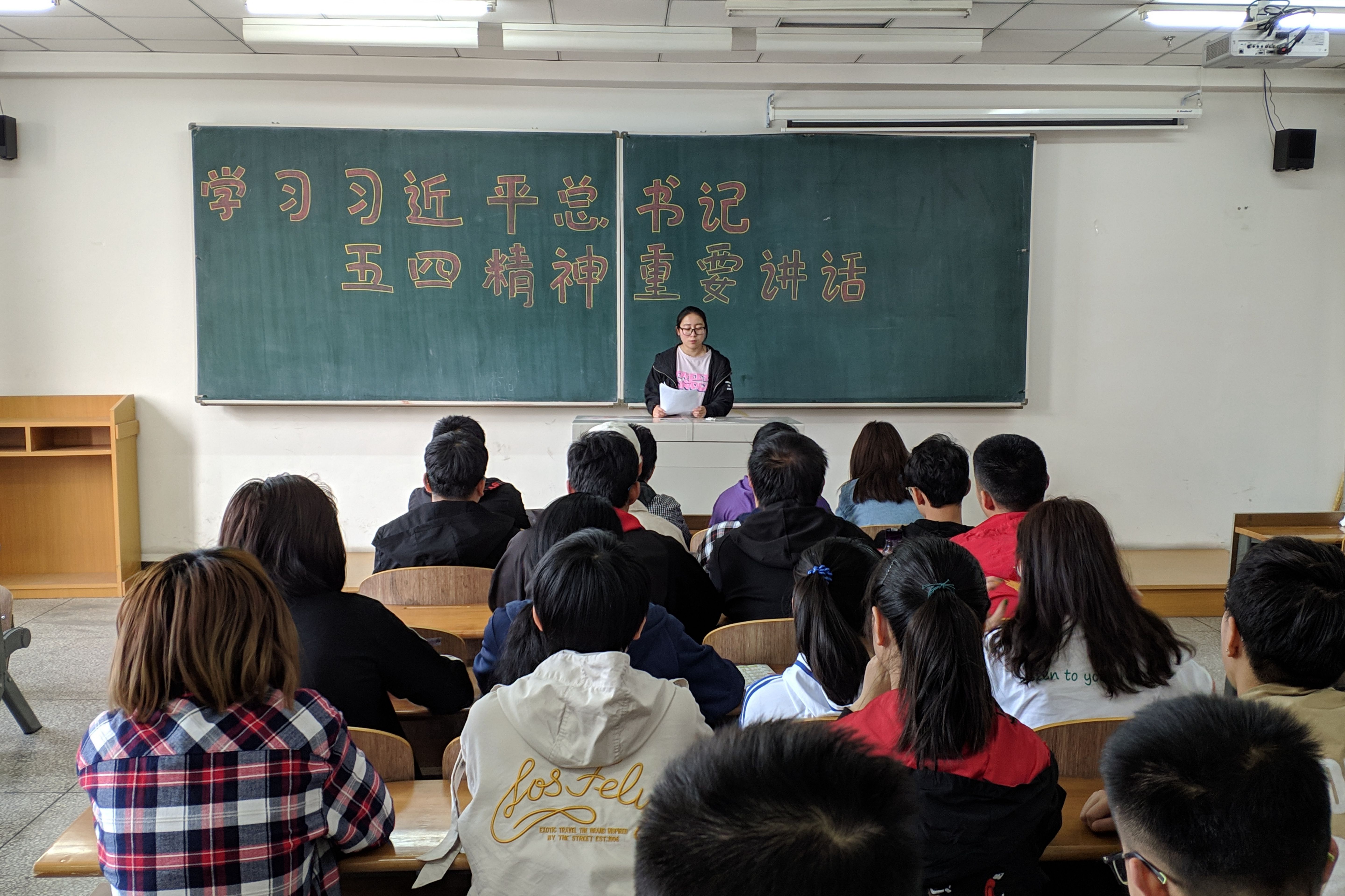 各团支部书记在学习中简要介绍了五四运动的时代背景和发展经过。各支部成员就习近平总书记在纪念大会上讲话内容中的“奋斗”、“青春理想”、“担当”等关键词展开激烈讨论,深入探究了五四精神在新时代民族复兴长征路上所具有的时代价值以及当代青年所担负的历史使命和民族责任。最后,各团支部书记强调了总书记对新时代青年提出的六点要求,希望大家树立远大理想,热爱伟大祖国,担当时代责任,勇于砥砺奋斗,练就过硬本领,锤炼品德修为。同时告诫同学们在今后的学习生活中,要继续发扬伟大的五四精神,在学习中增长知识、锤炼品格、练就本领,以真才实学和创新创造服务人民、贡献国家!