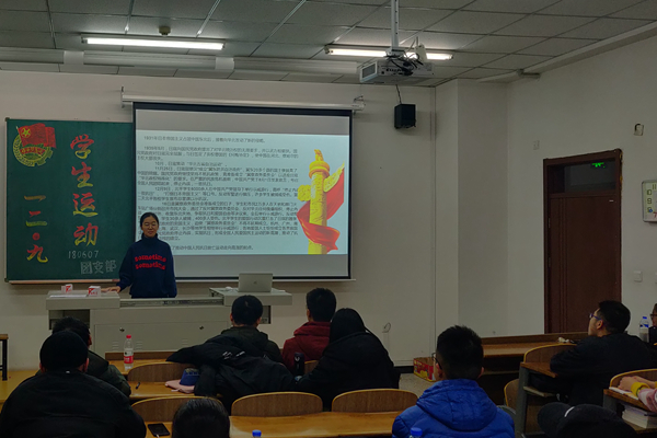 会上,团支部书记梁译丹以“为实现中华民族伟大复兴的中国梦而奋斗,是中国青年运动的时代主题。”为引,向同学们介绍了一二·九抗日救亡学生运动的历史背景和历史意义。随后,宣传委员孙世瑶与同学们分享了一二·九运动的抗争历程。实践委员陈发进结合习近平总书记系列讲话精神,向大家阐述了中华民族传统的爱国主义情感和具有鲜明时代特征的新时代爱国主义思想,引起了大家的热烈讨论。最后团支部副书记李盟对本次团支部会议做了总结:“新时代爱国主义从来不是空谈,同学们要努力提升自身素质修养,尊重和传承中华民族的历史和文化,为实现中华民族伟大复兴的中国梦尽自己的一份力量。”