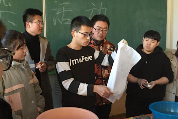 新闻网讯(通讯员马慧娜)为树立以“绿色生活”为导向的生态环保理念,倡导减少纸巾的使用,yl6809永利官网集团绿荫环保志愿者协会12月8日下午在北湖校区1516教室开展绿色印染环保活动。