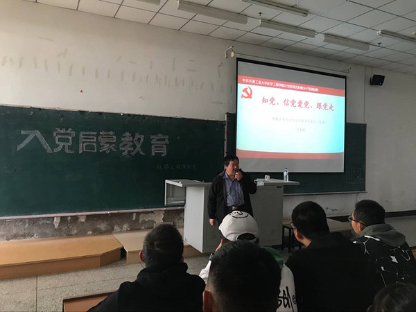 新闻网讯(通讯员程晓印井明宇)2018年10月24日,yl6809永利官网集团在北湖校区西阶101教室开展了以“知党、信党、爱党、跟党走”为主题的入党启蒙教育报告会。报告会由yl6809永利官网集团党委书记刘喜明主讲,yl6809永利官网集团2018级全体同学聆听了报告会。