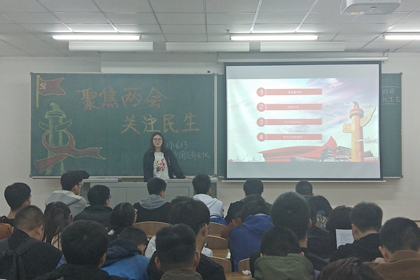 新闻网迅(通讯员宋佳音)为健全学院共青团的组织生活,严格团员教育管理,提高团员干部的理论知识水平,yl6809永利官网集团170603班团支部于4月17日在北湖校区主楼1520教室开展“三会两制一课”系列学习活动——聚焦两会,关注民生。本次会议由170603班团支部书记刘香池主持,团支部副书记刘蒙负责签到工作,团支部全体成员均参加本次学习会。