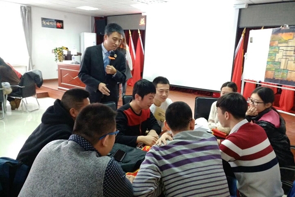培训课程刚开始,各志愿者协会作了简单的介绍,主讲人宣讲了团队面对首先要建立目标,迎难而上,最后取得团队双赢。随后,主讲人组织了以“沙漠掘金”课程体验的方式培养我们团队在决策、合作、沟通、压力及冲突中能正确的处理问题。