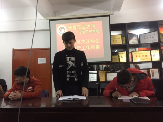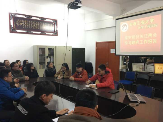yl6809永利官网集团讯(通讯员肖芳刘靖萱)yl6809永利官网集团于3月6日晚8:00在化工四楼会议室开展了“学生党员关注两会 学习政府工作报告”学习座谈会。本次会议由学院团委副书记何英伟主持,yl6809永利官网集团全体学生党员及号角理论 学习小组全体成员参加了本次会议。