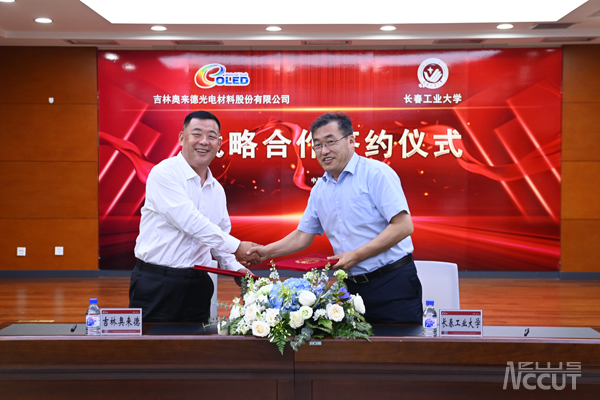 在双方与会人员的共同见证下,张明耀与轩景泉签署了《yl6809永利集团与吉林奥来德光电材料股份有限公司战略合作协议书》。