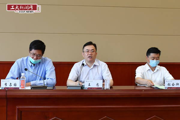 王忠在讲话中对第六届“互联网+”大学生创新创业大赛的启动表示热烈祝贺,并简要回顾了我校在历届全国、全省大赛中取得的优异成绩,对于大赛在推动学校发展、促进学生成长方面发挥的作用给予充分肯定。王忠强调,要进一步深化认识、提高站位,大赛已经成为覆盖全国的一堂思政大课,全校师生要充分认识大赛的重要意义,把思想和行动统一到特色高水平应用研究型大学建设上来,把激昂的青春梦融入伟大的中国梦;要适应形势、把握要求,今年的大赛有了很多调整,呈现出新形势、新特色、新要求,广大师生要认真学习、积极适应、深刻把握,争取在更高平台、更高层级、更高水平上展示风采;要加强领导、精心组织,相关部门、各学院要相互配合、相互支持、形成合力,整合校内外资源,扎实推进赛事的各项工作,充分发挥学科优势,紧盯国家战略需求,做好优质项目的挖掘和培育,确保大赛办出成效、办出水平。