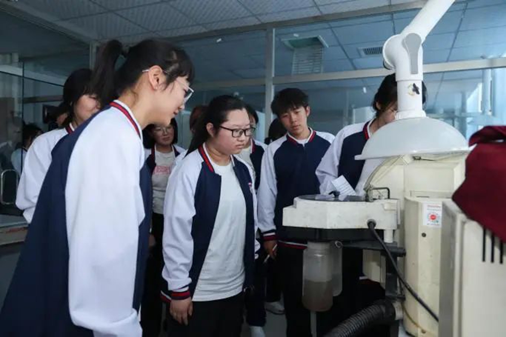 在参观环节,同学们跟随着研究所工作人员的脚步,走进了实验室。工作人员详细讲解了各类仪器的使用方法,从精密的MS仪器,再到专业的光谱分析仪,让同学们对高精度的科研发展有了概念,打开了同学们对于化学实验仪器新世界的大门。同学们好奇地观察着实验操作过程,不时提出问题,与工作人员积极互动。