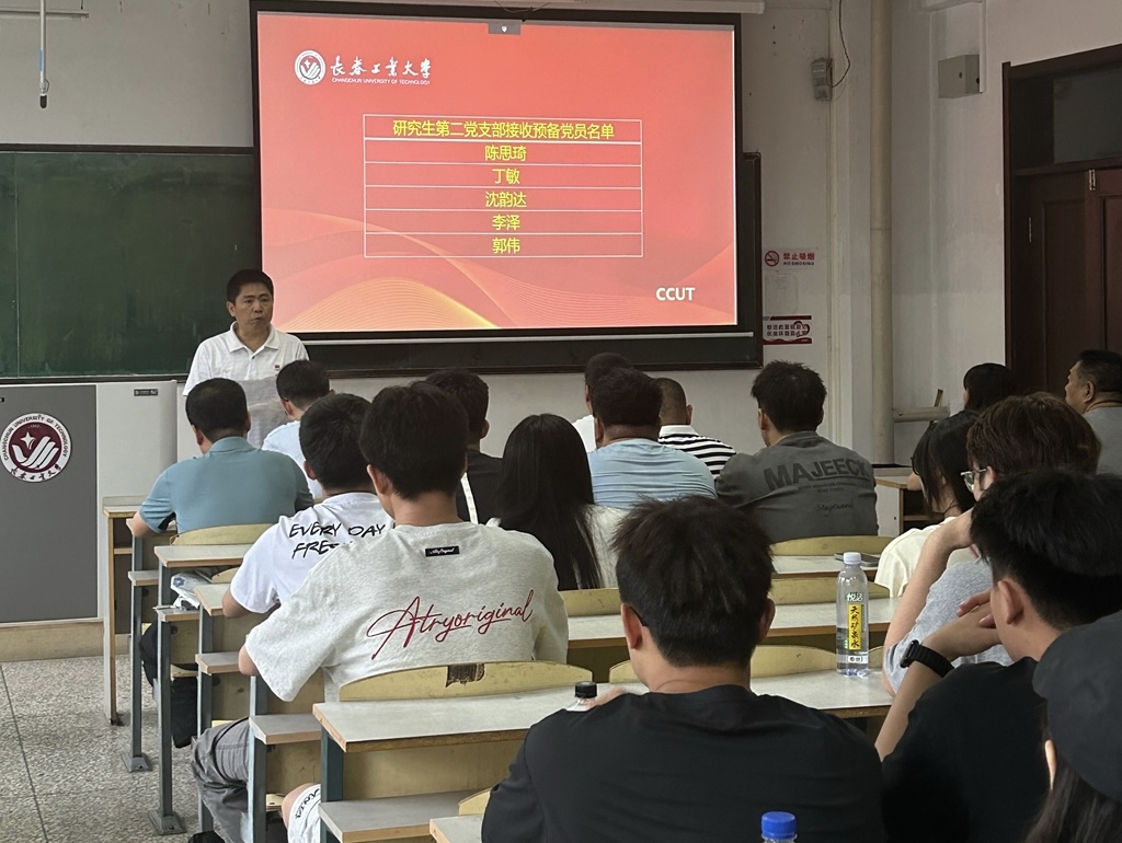 仪式在雄壮的国歌声中拉开帷幕。研究生第二党支部黄向东郑重宣读学院党委批复,正式接收陈思琪、丁敏、郭伟、李泽、沈韵达五名同志为中共预备党员。