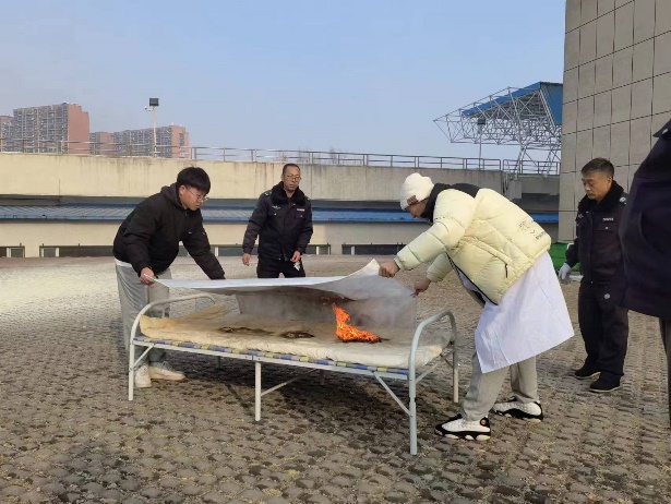资产处和安全处现场指导学生,如遇火情,如何保证安全、快速、有序逃生;面临可控火情时,第一时间如何正确使用灭火器、灭火毯有效灭火;详细讲解了灭火和逃生时需要注意的细节,并让同学们进行了实操演练。